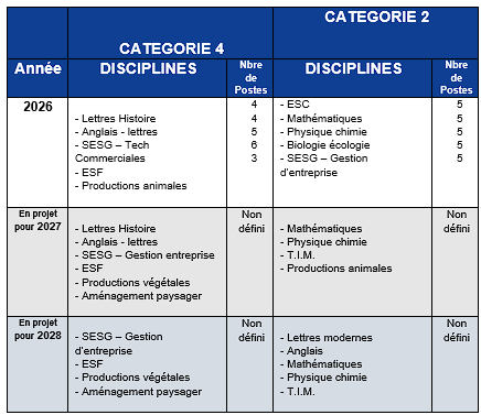 LES DISCIPLINES OUVERTES AU CONCOURS INTERNE 2026 et les prévisions d’ouverture pour 2027 et 2028